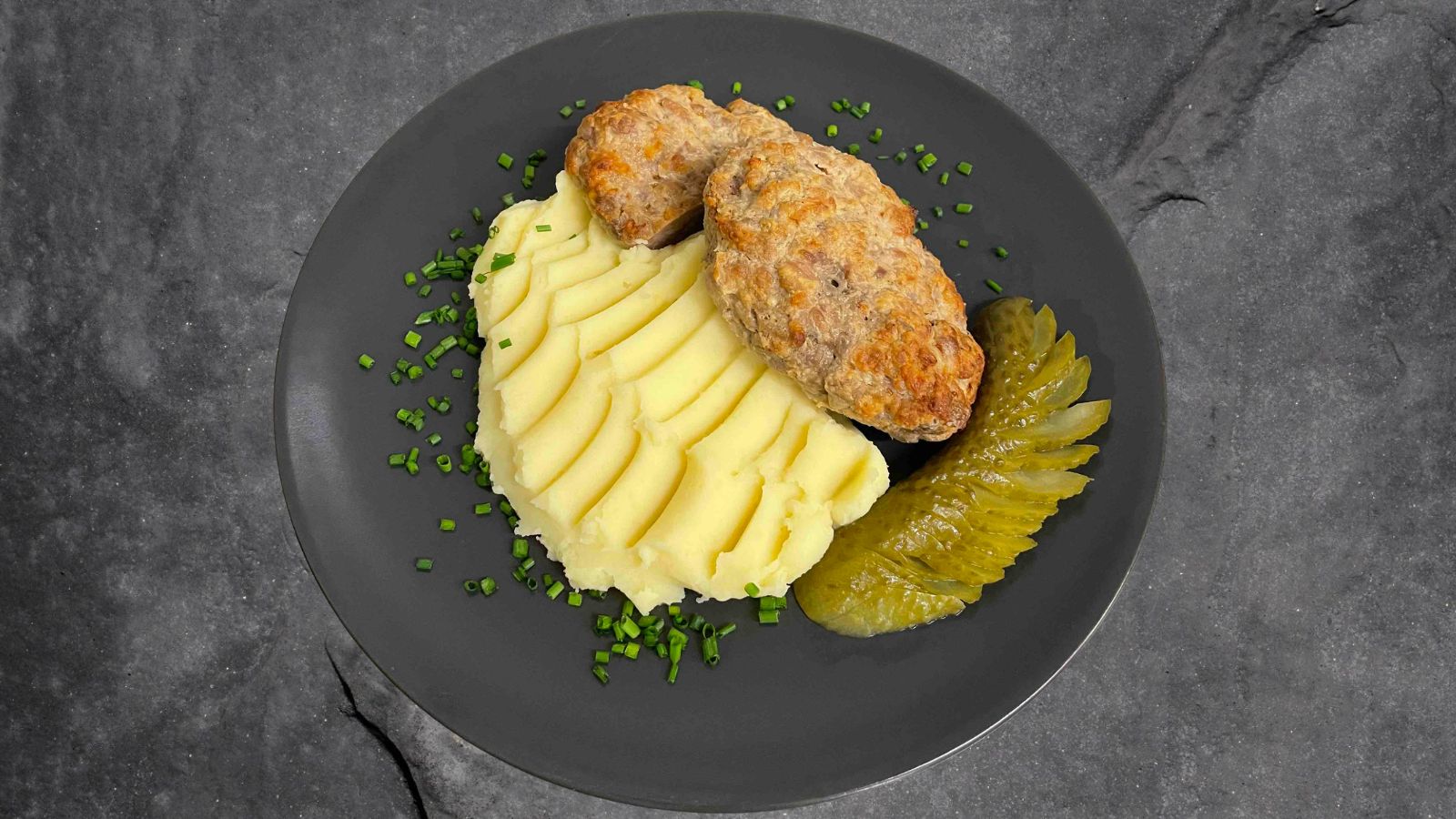 Přírodní sekaný máslový řízek s bramborovou kaší