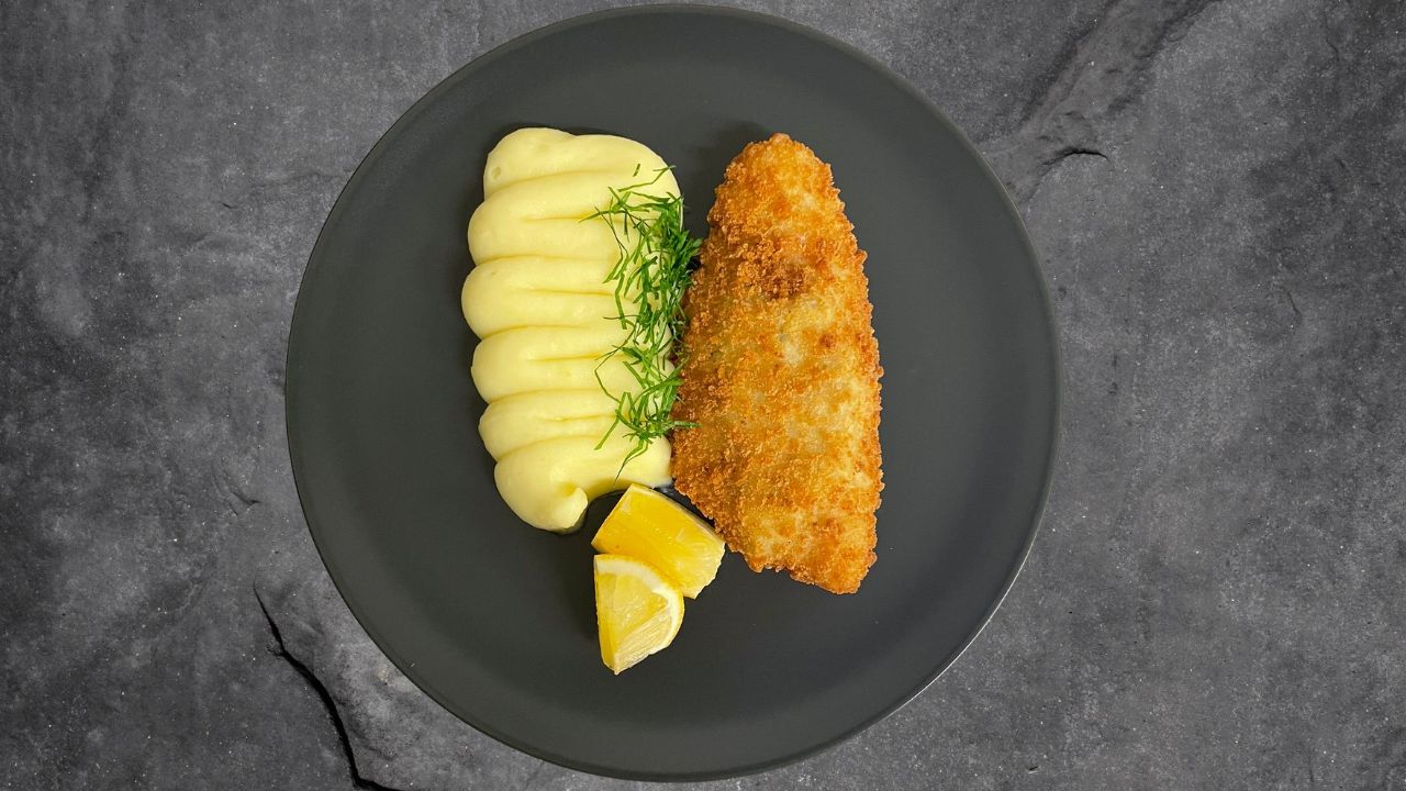 Smažená treska, bramborová kaše, citrón